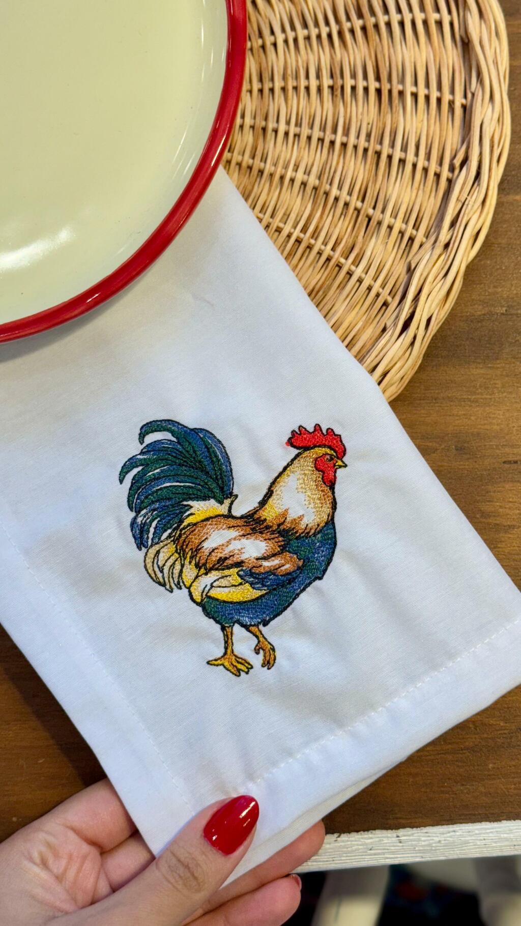 Este guardanapo branco com galo bordado é a escolha perfeita para quem aprecia o estilo Farm House. Com um design clássico e acolhedor, ele traz um charme especial a qualquer refeição. Ideal para jantares em família ou ocasiões festivas, seu bordado delicado adiciona um detalhe encantador que encanta os convidados.