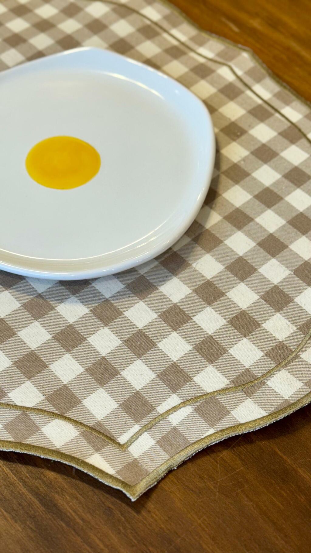 Jogo Americano Vichy Bege: sofisticação à mesa. Com um design diferenciado e elegante padrão xadrez bege, este jogo americano transforma qualquer refeição em um momento especial. Seu formato exclusivo alia estilo e funcionalidade, trazendo um toque de charme e requinte para sua decoração. Perfeito para quem valoriza detalhes que fazem a diferença. Medidas: 48cm comprimento x 38cm largura