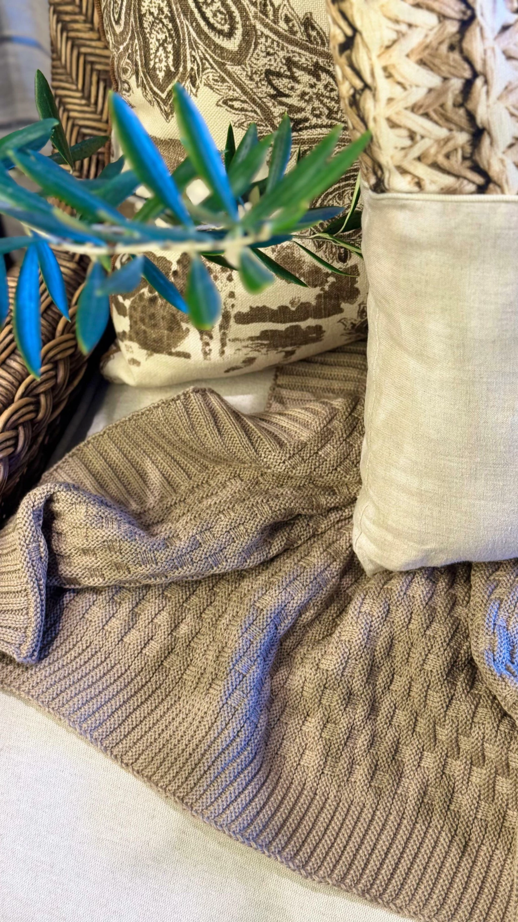 Eleve seu ambiente com a beleza atemporal da Manta Amêndoa.