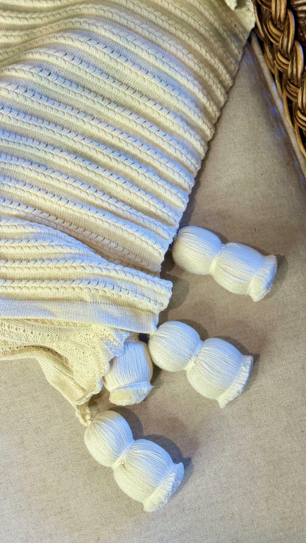 Descubra a Manta Cru, uma peça atemporal feita 100% em algodão, que combina suavidade e estilo em sua decoração. Com uma trama sofisticada de mini tranca, sua cor clássica traz um charme discreto, ideal para qualquer ambiente.