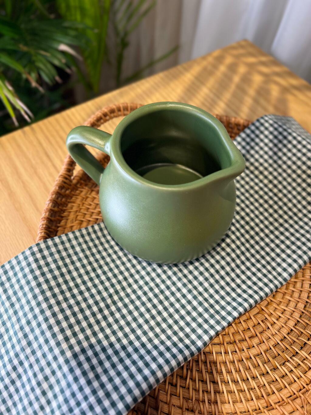 Descubra a Mini Jarra Verde, uma peça encantadora que traz um toque de sofisticação à sua mesa. Com um design diferenciado, esta jarra pequena de cerâmica é perfeita para servir café, leite ou até suco, além de ser uma linda opção para colocar flores.