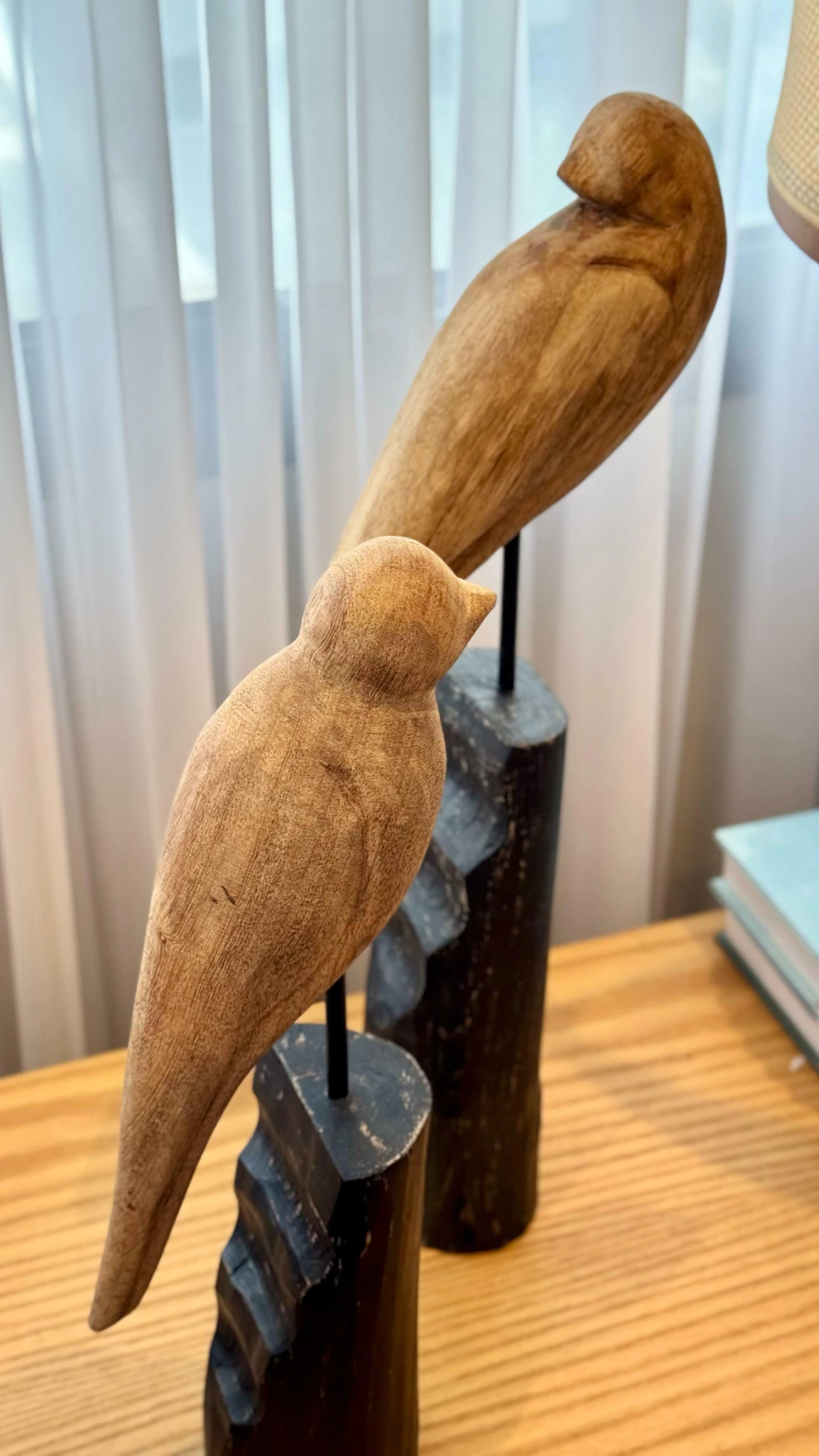 Adicione um charme único à sua decoração com nossos Pássaros de Madeira, que apresentam uma estrutura preta sofisticada. Disponíveis em dois tamanhos distintos, essas peças decorativas são ideais para embelezar qualquer ambiente, criando uma atmosfera acolhedora e elegante.