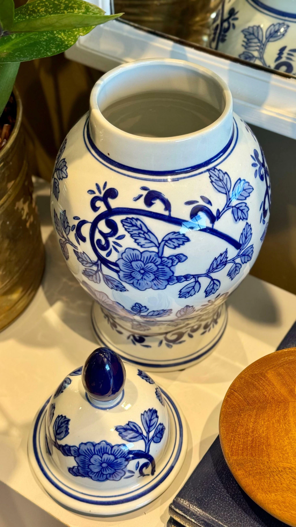 Potiche GG de Porcelana Azul: um toque de sofisticação para sua decoração. Este impressionante potiche possui 36 cm de altura, 20 cm de largura e 20 cm de comprimento, tornando-se uma peça central ideal para qualquer ambiente.